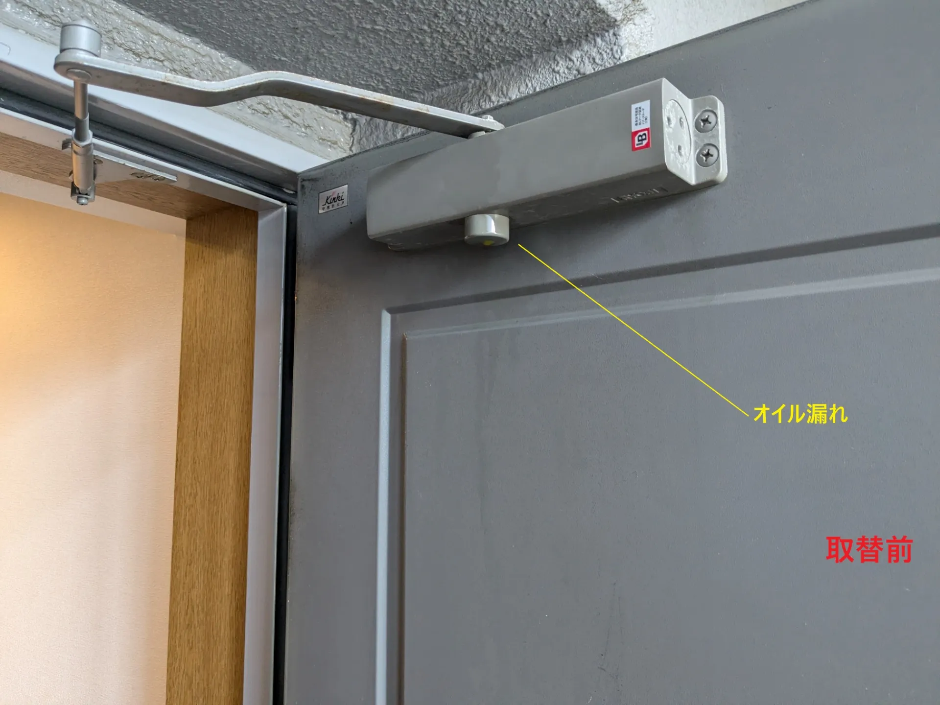 ドアクローザーにてオイル漏れが発生して取り替える事となりました。
